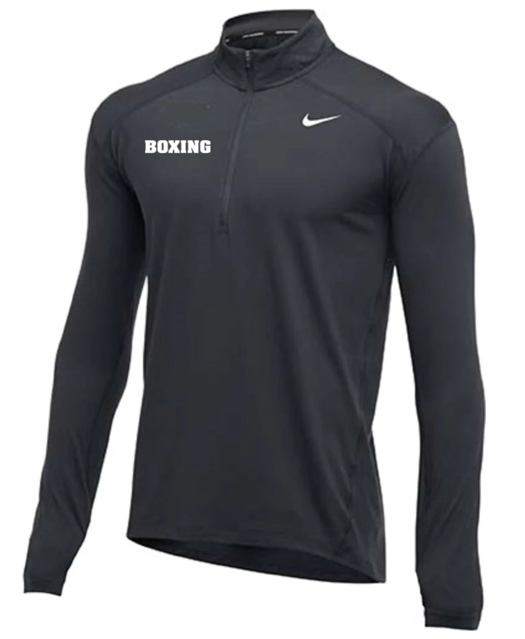 Nike Men’s Boxing 1/2 Zip Top – Charcoal – Nike Dri-FIT technology helps you stay dry and comfortable. 1/2-zip design with a mock neck provides versatile coverage. Interior tape moves smoothly against your skin. Swoosh design trademark is printed on the right chest. 100% POLYESTER.