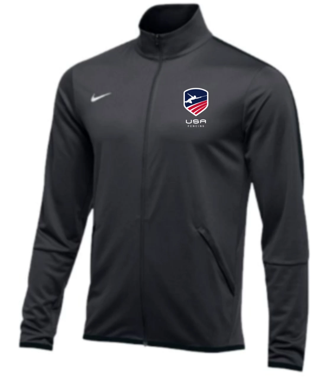 Nike Men’s USAF Epic Jacket – Anthracite – USA Fencing Dri-FIT technology helps you stay dry and comfortable. Textured knit fabric is breathable and lightweight. Full-length zipper and mock neck for custom coverage. Zippered pockets provide secure storage. Minimized cuffs and hem offer zero distractions. 100% POLYESTER ** Please allow 10 business days from order date for production** **THIS ITEM IS NOT AVAILABLE FOR EXPRESS SHIPPING**