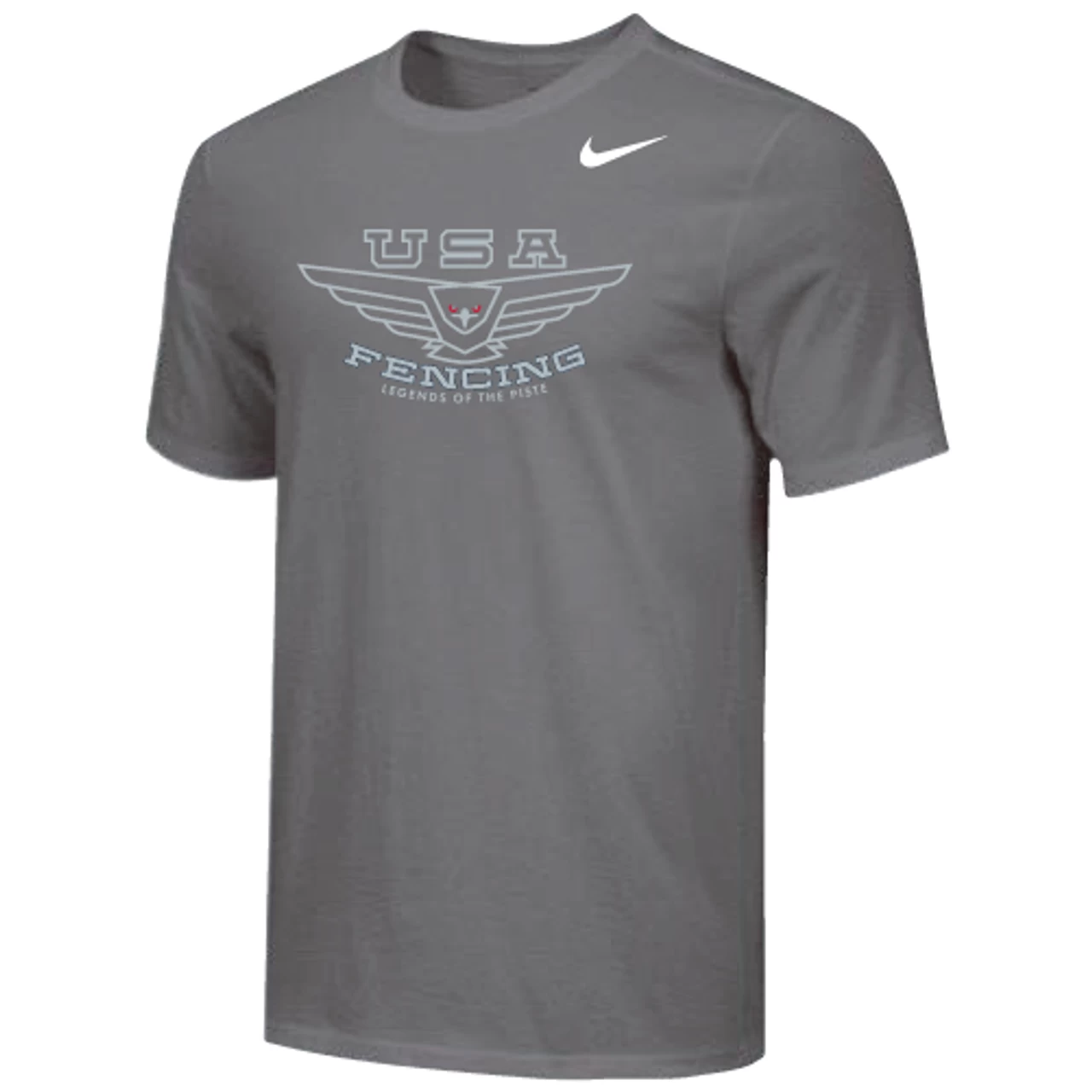 Nike Men’s USA Fencing Legends of the Piste Tee – Grey/Silver – Form and function combine for a modernized look with less bulk in the Nike 100% Premium Ring Spun Cotton Tee.