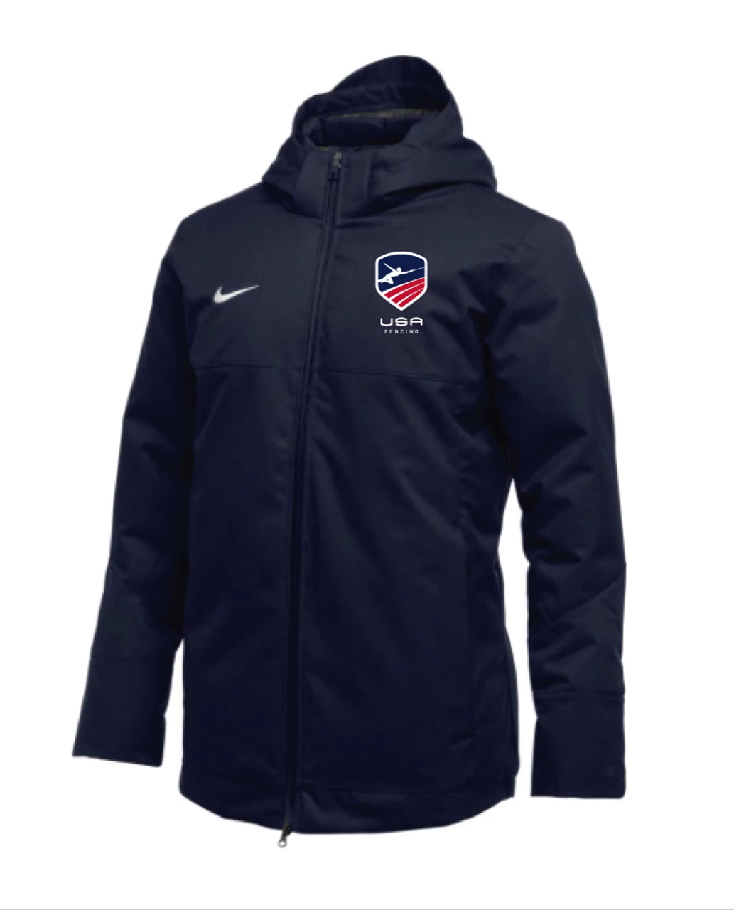 Nike Men’s USA Fencing Team Down Filled Parka – Navy/Red/White/Blue – The Nike Parka keeps you covered when the weather requires you to bundle up. Down insulation helps you stay warm and the hood will keep you comfortable even in the rain or wind. Nike HyperShield fabric blocks elements like wind and rain to keep you comfortable in the harshest of weather. A hood combines with a raised collar to help keep the elements at bay. Full front zipper allows you to customize comfort. Zippered pockets help keep personal items close. 100% polyester.