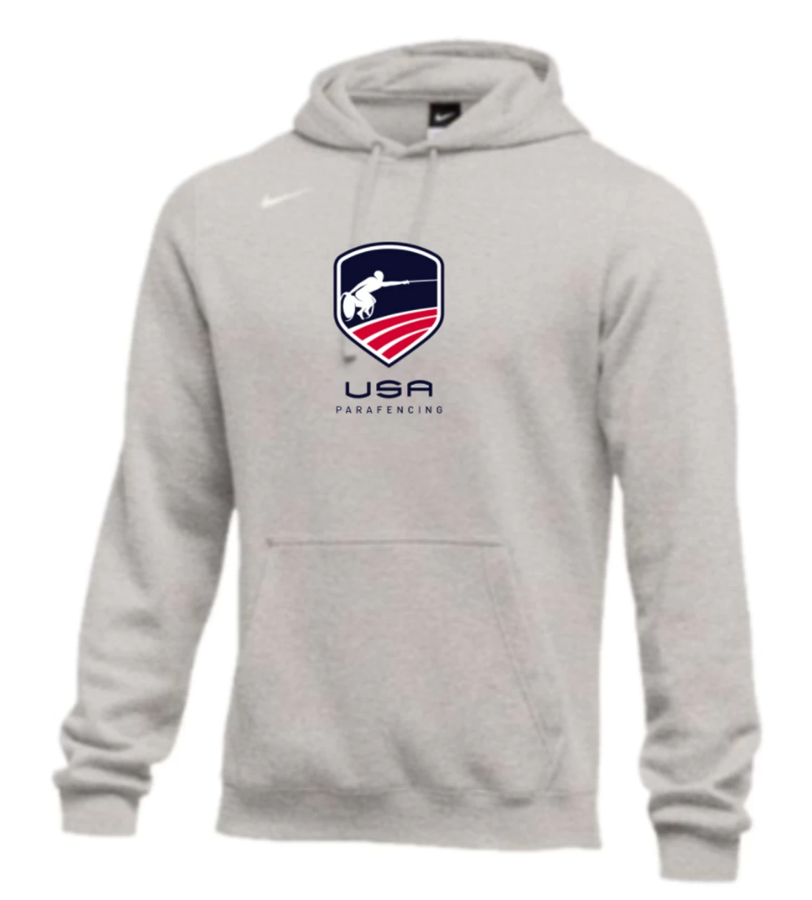 Nike Men’s USA Parafencing Club Fleece Pullover Hoodie – Heather Grey – USA Parafencing Hoodie delivers the soft comfort of French terry fabric in a classic design. It’s a versatile layer ideal for the gym, practice or for every day wear. ** Please allow 10 business days from order date for production** **THIS ITEM IS NOT AVAILABLE FOR EXPRESS SHIPPING**