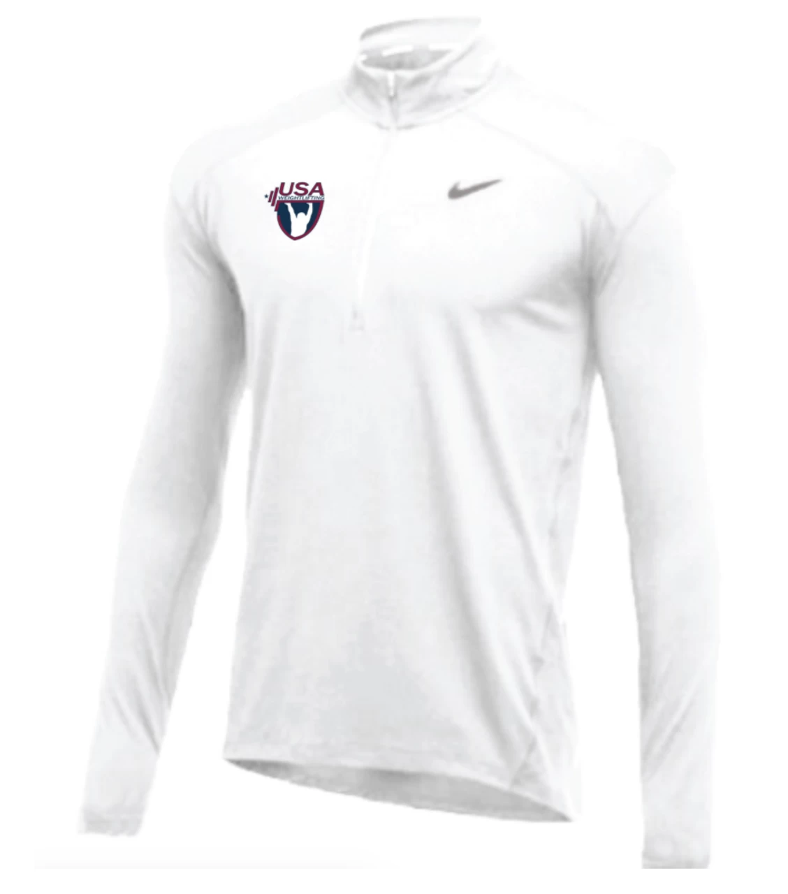 Nike Men’s USA Weightlifting 1/2 Zip Top – White – Nike Dri-FIT technology helps you stay dry and comfortable. 1/2-zip design with a mock neck provides versatile coverage. Interior tape moves smoothly against your skin. Swoosh design trademark is printed on the right chest. 100% POLYESTER.