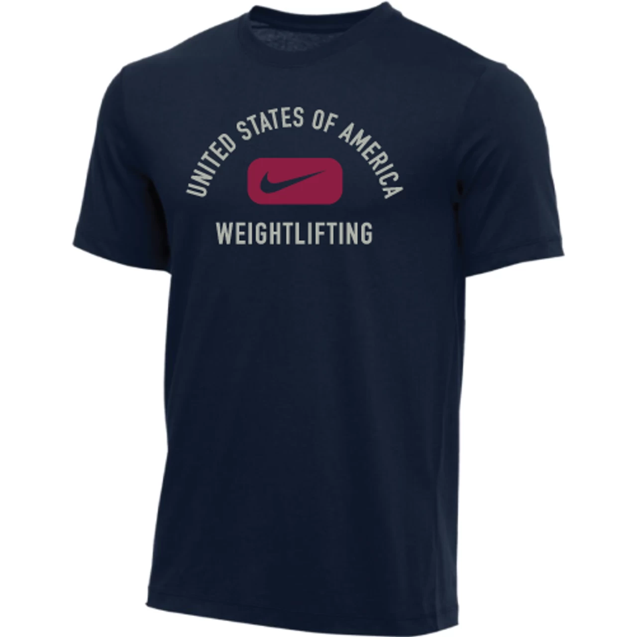 Nike Men’s USA Weightlifting Arch USA Tee – Navy – Form and function combine for a modernized look with less bulk in the Nike 100% Premium Ring Spun Cotton Tee.