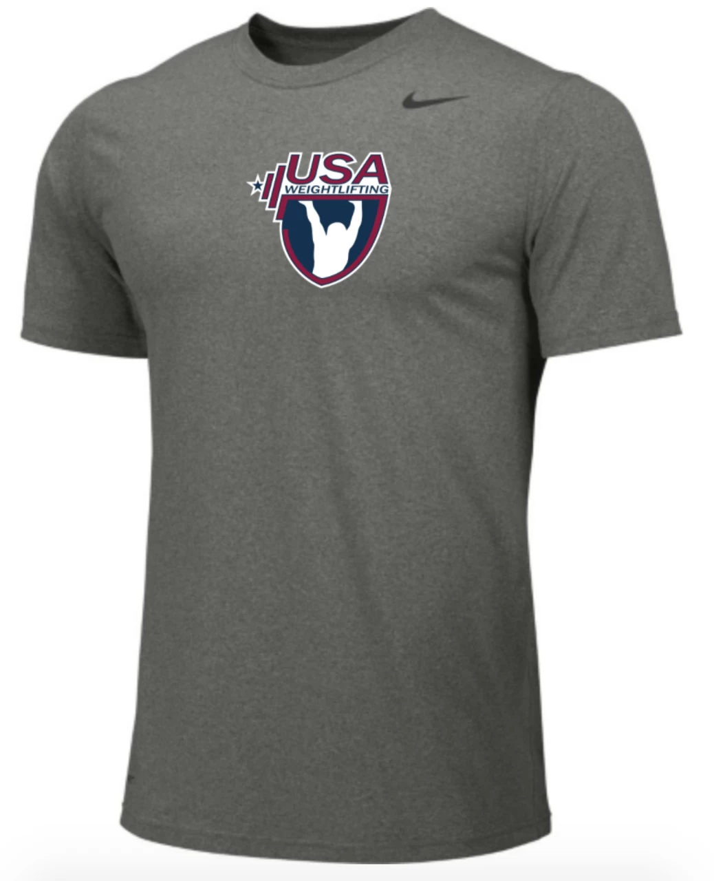 Nike Men’s USA Weightlifting Legend –Â Carbon Heather/ Black –Â The Nike Dri-FIT Legend T-Shirt is an essential layer with an odor-resistant finish that helps keep you fresh through workouts at any level. Lightweight fabric breathes and wicks sweat so you stay cool and dry from warmups well into the afterburn.