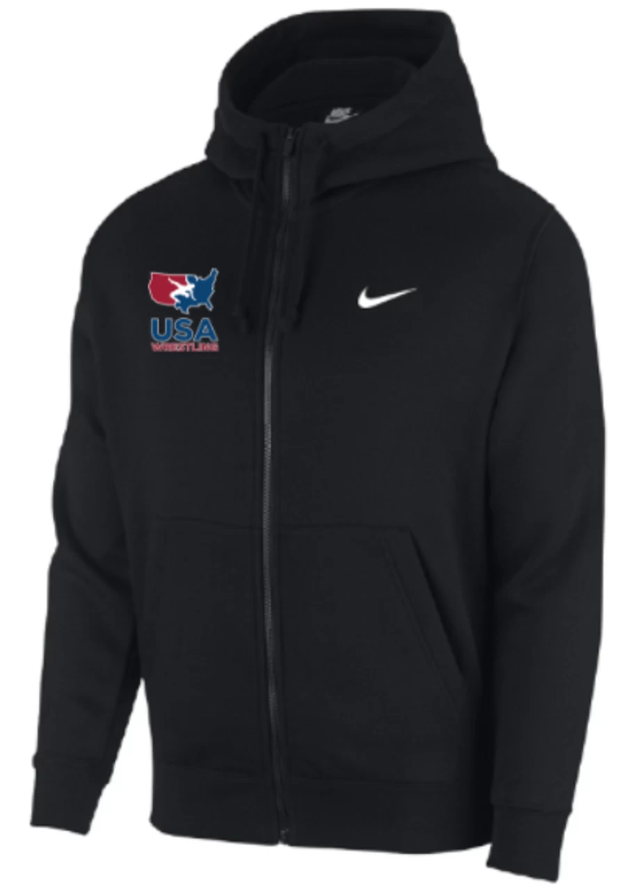 Nike Men’s USAWR Club Fleece Full Zip Hoodie – Black – USA Wrestling hoodie combines soft fabric with simple street style that’s versatile enough for everyday use. With a full zipper that goes to the chin, it’s the perfect extra layer on a chilly day.Fabric is brushed, making it super soft and comfortable. Full zipper allows for easy on and off. 80% COTTON 20% POLYESTER ** Please allow 10 business days from order date for production** **THIS ITEM IS NOT AVAILABLE FOR EXPRESS SHIPPING**