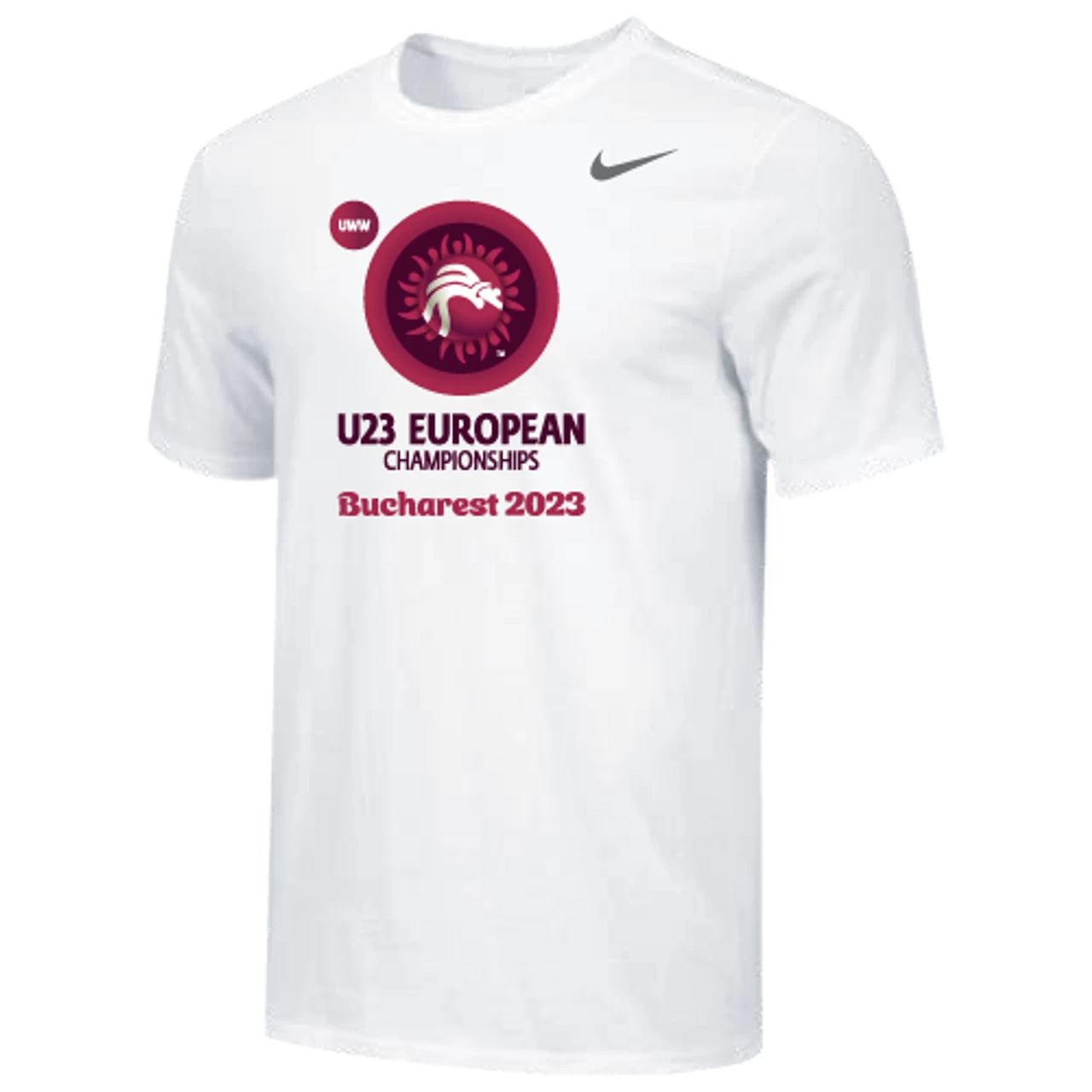 Nike Men’s UWW U23 European Championships Bucharest 2023 Tee – White – Form and function combine for a modernized look with less bulk in the Nike 100% Premium Ring Spun Cotton Tee.
