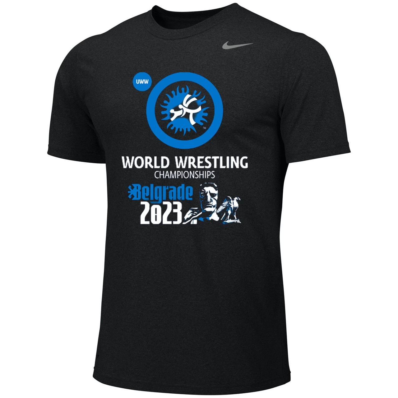 Nike Men’s UWW World Championships Belgrade 2023 Tee – Black – Form and function combine for a modernized look with less bulk in the Nike 100% Premium Ring Spun Cotton Tee.