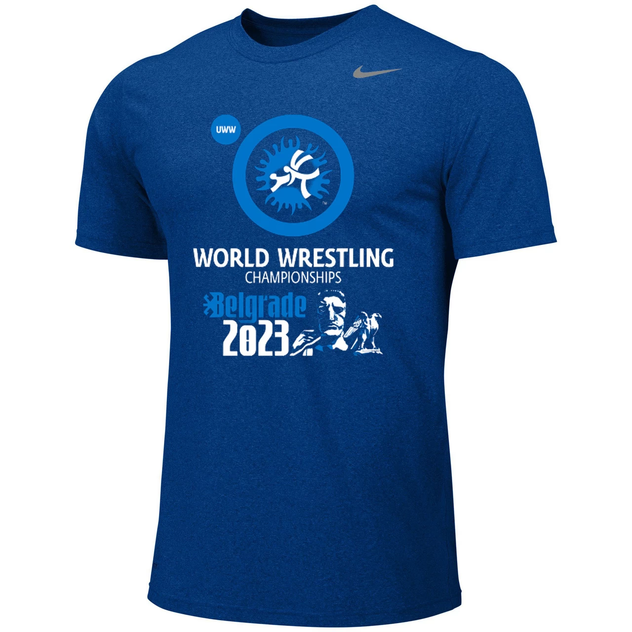 Nike Men’s UWW World Championships Belgrade 2023 Tee – Royal – Form and function combine for a modernized look with less bulk in the Nike 100% Premium Ring Spun Cotton Tee.