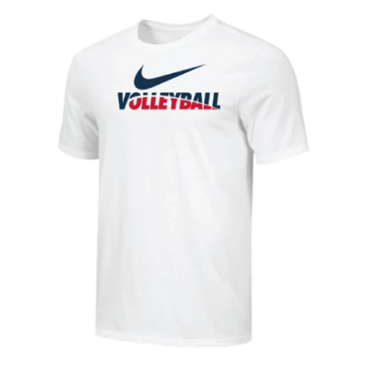 Nike Men’s Volleyball Tee – White/Navy/Red – Form and function combine for a modernized look with less bulk in the Nike 100% Premium Ring Spun Cotton Tee.