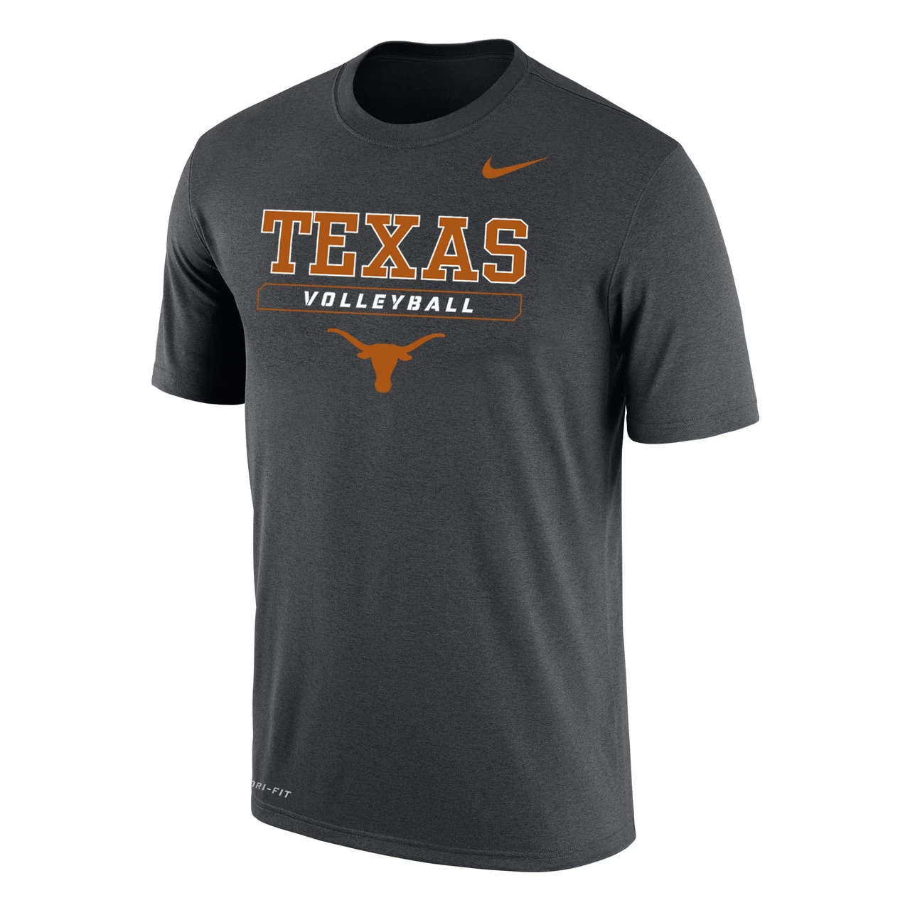 Nike Men’s Volleyball University of Texas Dri-Fit Cotton Short Sleeve Tee – Anthracite – The Nike Dri-FIT T-Shirt is made with soft fabric that wicks sweat to help keep you comfortable and dry from your first stretch through your last set. Slub texture has a broken-in look and feel.