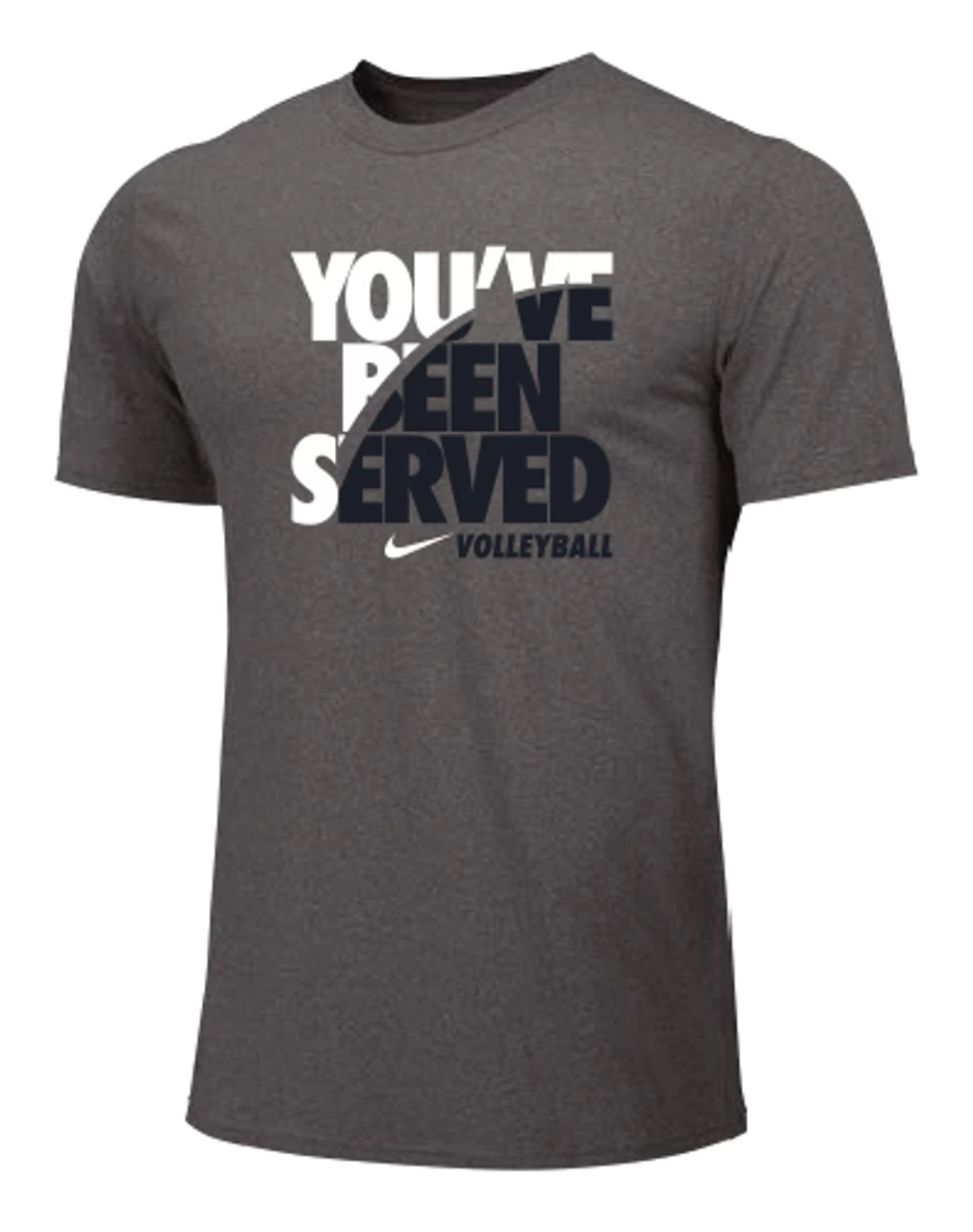 Nike Men’s Volleyball You’ve Been Served Tee – Grey/White/Black – Form and function combine for a modernized look with less bulk in the Nike 100% Premium Ring Spun Cotton Tee.