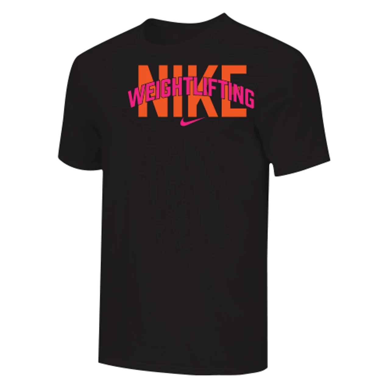 Nike Men’s Weightlifting Arch Tee – Black/Pink/Orange –Â Form and function combine for a modernized look with less bulk in the Nike 100% Premium Ring Spun Cotton Tee.