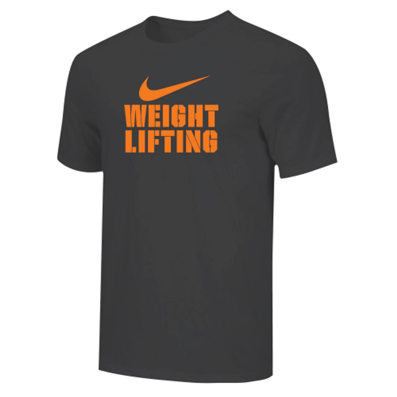 Nike Men’s Weightlifting Stacked Tee – Black/Fluorescent Orange – Form and function combine for a modernized look with less bulk in the Nike 100% Premium Ring Spun Cotton Tee.