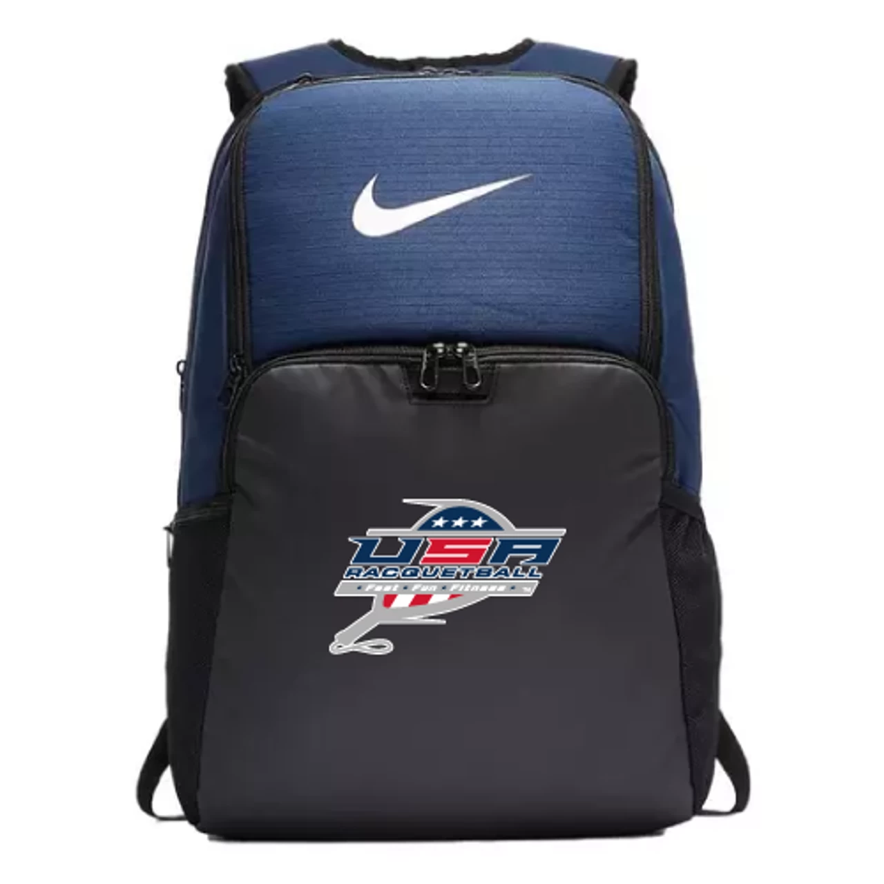 Nike USA Racquetball Brasilia Backpack –Â The Nike Brasilia Backpack features a spacious main compartment and a laptop pocket. Padded back and adjustable shoulder straps make carrying comfortable.
