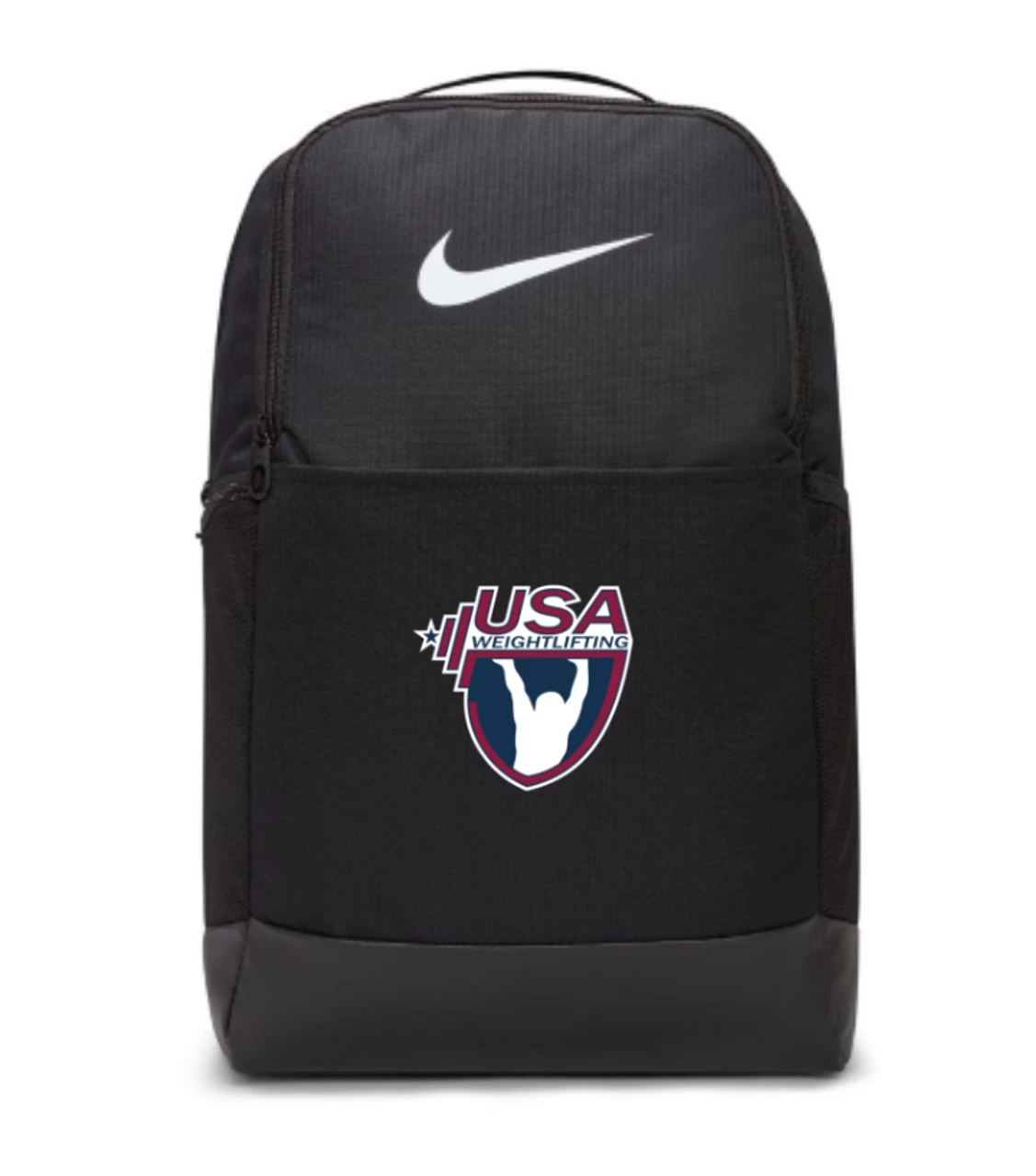 Nike USA Weightlifting Brasilia 9.5 Training Backpack (Medium, 24L) – Black/White –Â Grab your gear and get going with the Nike Brasilia Backpack. It has plenty of pockets to help you stay organized including a sleeve to fit your laptop, side mesh pockets for water bottles and a zippered pocket on the inside to keep small items secure. This product is made with at least 50% recycled polyester