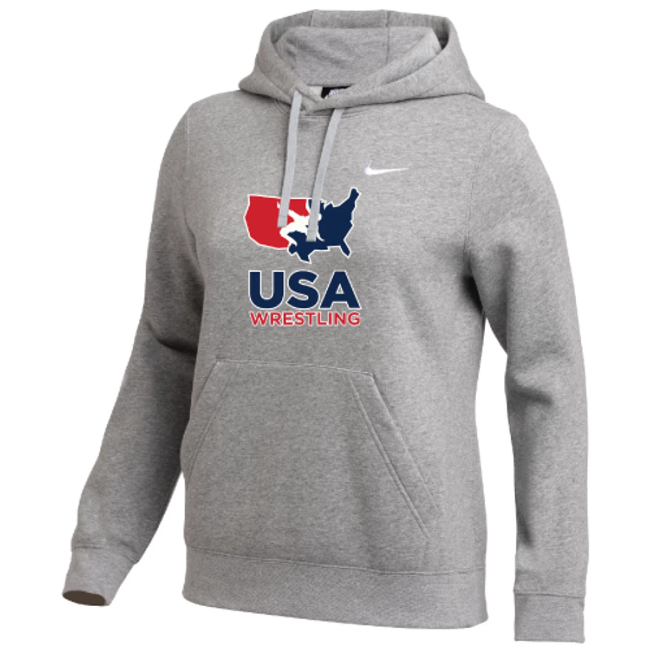 Nike Women’s USA Wrestling Club Fleece Pullover Hoodie – Heather Grey/White – USA Wrestling Hoodie delivers the soft comfort of French terry fabric in a classic design. It’s a versatile layer ideal for the gym, practice or for every day wear.