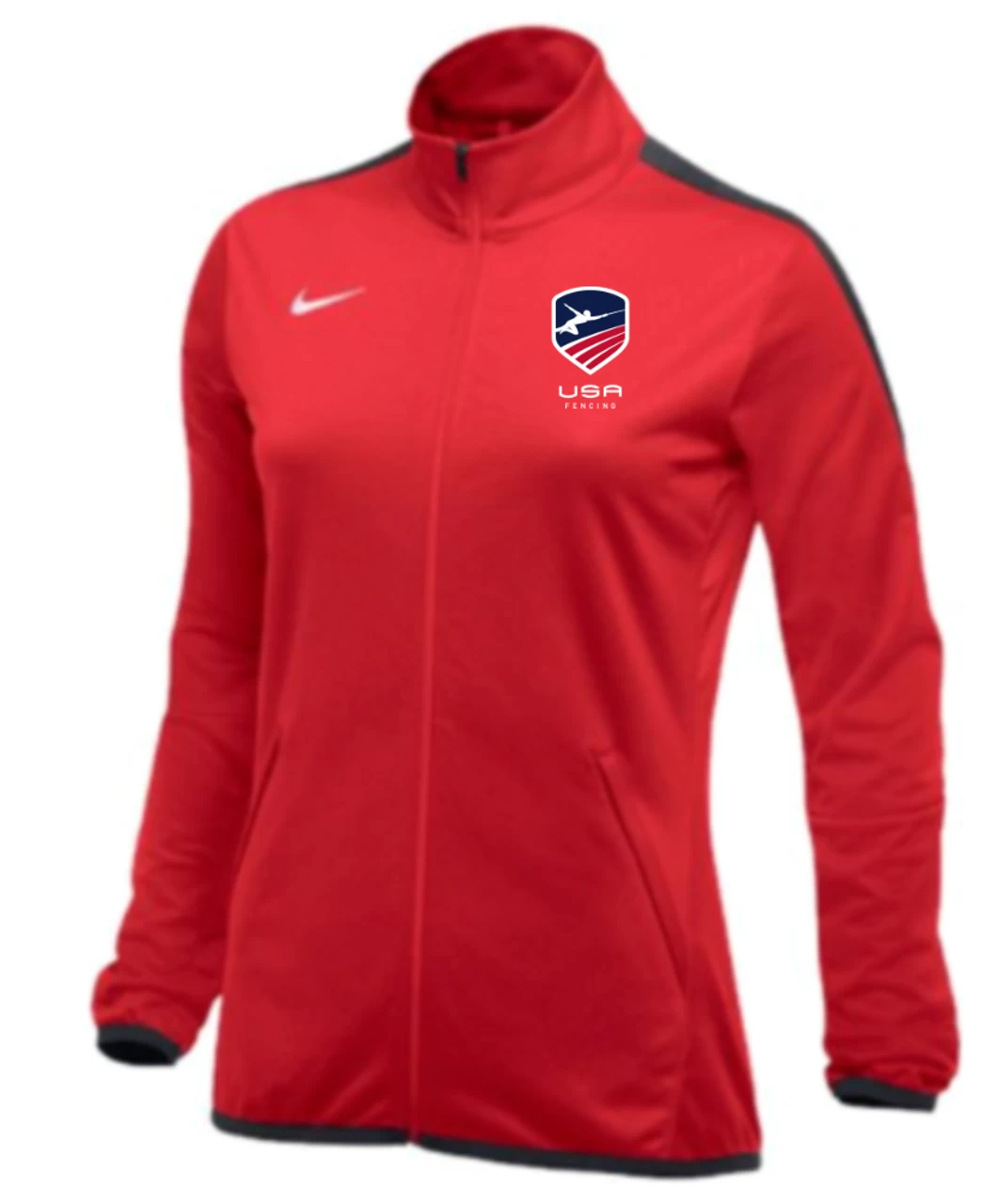 Nike Women’s USAF Epic Jacket – Scarlet/Anthracite – USA Fencing Dri-FIT technology helps you stay dry and comfortable. Textured knit fabric is breathable and lightweight. Full-length zipper and mock neck for custom coverage. Zippered pockets provide secure storage. Minimized cuffs and hem offer zero distractions. 100% POLYESTER ** Please allow 10 business days from order date for production** **THIS ITEM IS NOT AVAILABLE FOR EXPRESS SHIPPING**