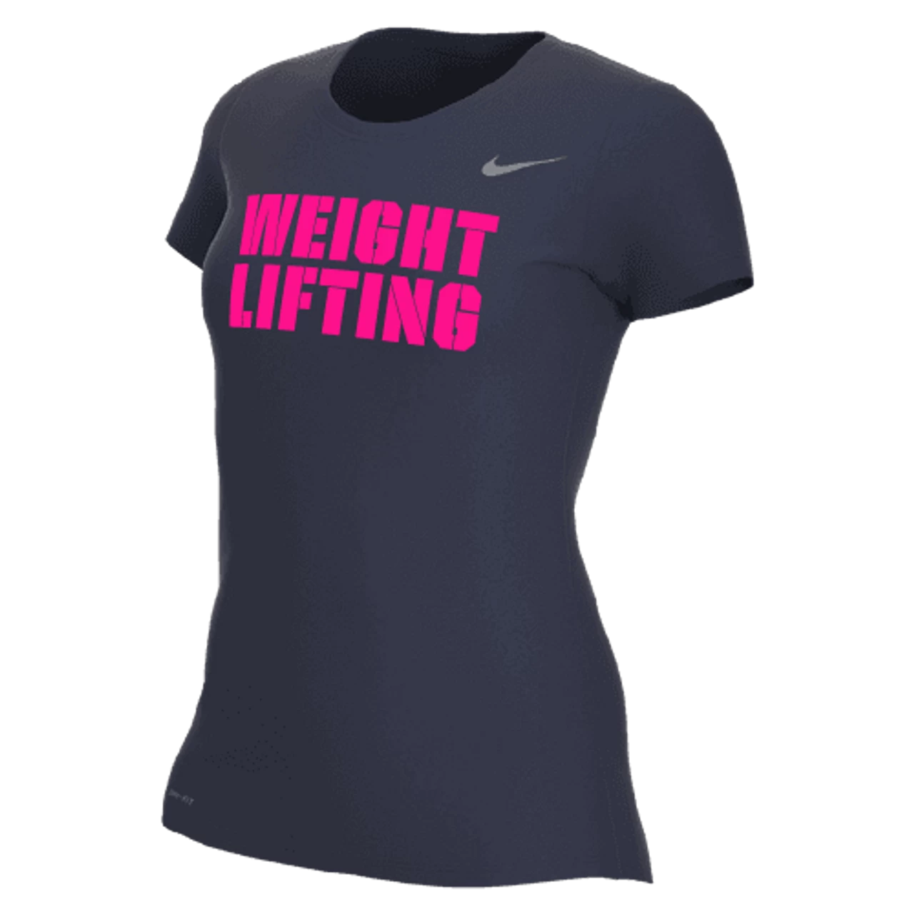Nike Women’s Weightlifting Legend Tee – Navy – Dri-FIT technology helps keep you dry and comfortable. Interior neck tape moves smoothly against your skin. Swoosh design trademark is heat transferred on the upper left chest. 100% POLYESTER