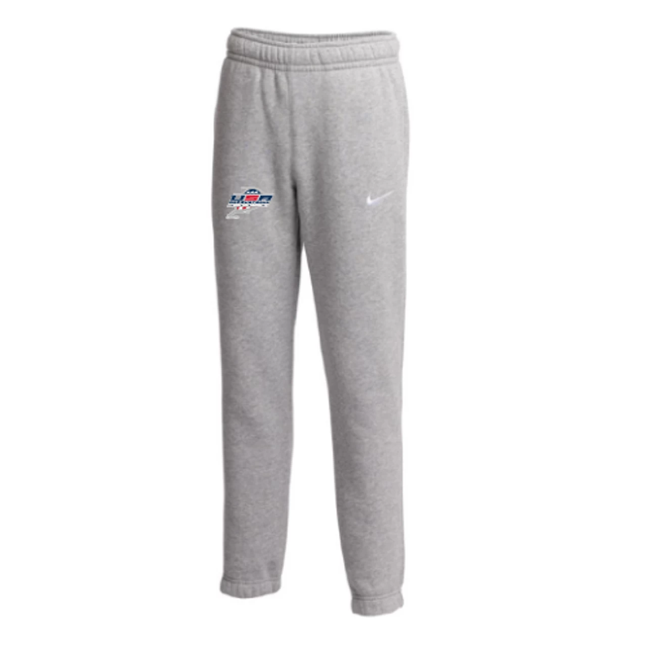 Nike Youth USA Racquetball Club Fleece Pant – Grey – USA Racquetball pant French terry fabric is soft and comfortable. Elastic waistband with draw cord for an adjustable fit. Open hems at the ankles for a casual, loose fit. Back welt pocket and side seam pockets for convenient storage. 81% COTTON 19% POLYESTER ** Please allow 10 business days from order date for production** **THIS ITEM IS NOT AVAILABLE FOR EXPRESS SHIPPING**